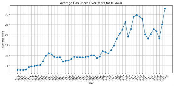 Gas Prices Over Years for MGACD') # Add a title