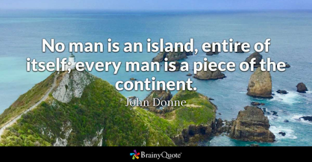 No man is an island, entire of itself; every man is a piece of the continent. John Donne